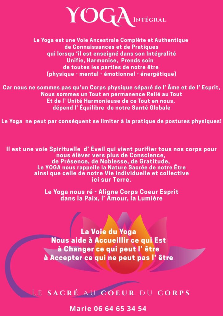 L’ essence du Yoga est de réveiller le Divin au Coeur de notre matière…..
